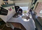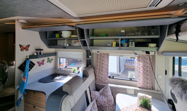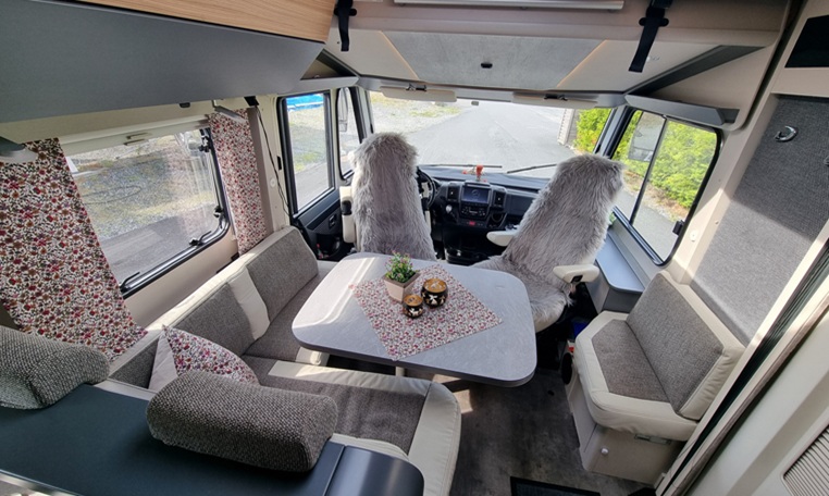 A practical motorhome with 4 fixed sleeping places (double bed and drop-down bed), bright and pleasant interior. Everything functions as it should.