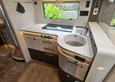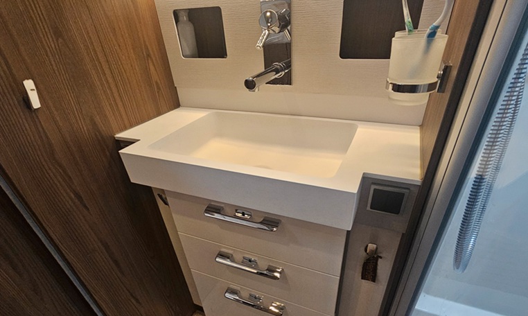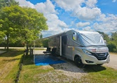 Thule internal bicycle rack for 2 bikes in the "garage," accessible from both sides, ensuring clean bikes. 2 gas bottles (one composite with "household connection" and one steel for self-filling).