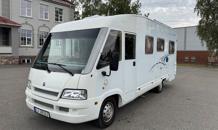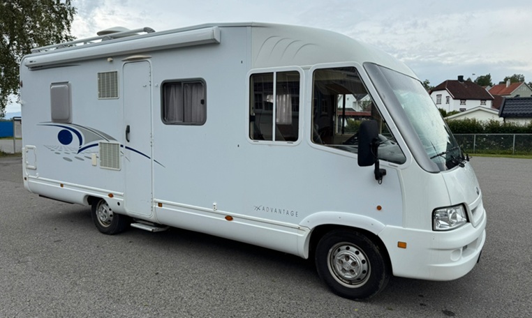 The motorhome has a manual transmission and front-wheel drive. It measures 690 cm in length and 225 cm in width.