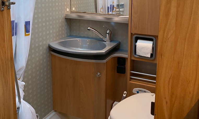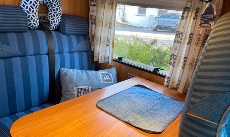 VAT incl.Small motorhome, perfect for 2 people, but registered for 4 in the vehicle documents. 599 cm long, so it qualifies as a passenger car on ferries. Recently EU-approved and passed the moisture test without any remarks.