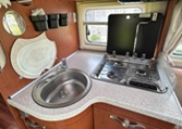 With two large gas bottles, you can keep the vehicle warm, cook on the gas stove, or use the oven. The vehicle has large fresh water, hot water, and wastewater tanks, making it possible to take a shower or do dishes while on the go!